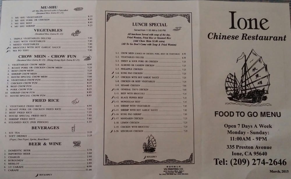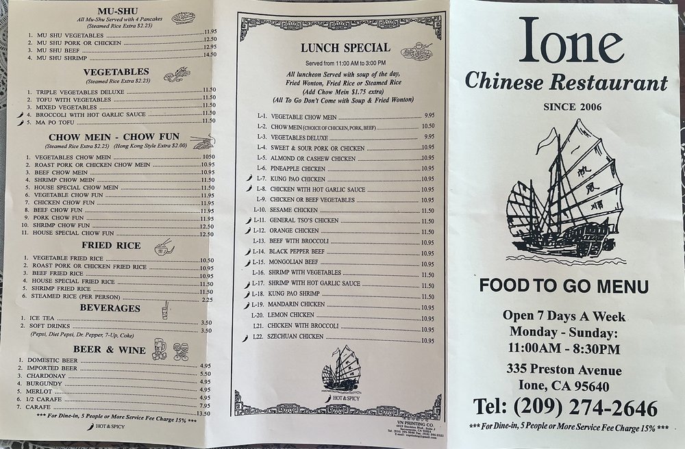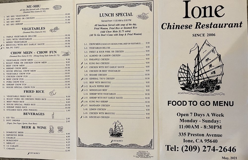 Ione Chinese Restaurant in Ione, CA, is a hidden gem that offers a delightful blend of modern and traditional Chinese cuisine. The restaurant provides a cozy ambiance and exceptional service, making dining here a memorable experience. Customer favorites include the special wonton soup, mandarin chicken, general chicken, and pork fried rice. The menu offers a variety of delicious options such as chicken, beef, rice, egg rolls, shrimp rolls, and ice tea. While some customers mentioned that the prices are a bit on the higher side, they unanimously agree that the food quality and portion sizes justify the cost. Whether you're looking for a casual lunch or a group dinner, Ione Chinese Restaurant is a must-visit destination for authentic Chinese flavors in Amador County.